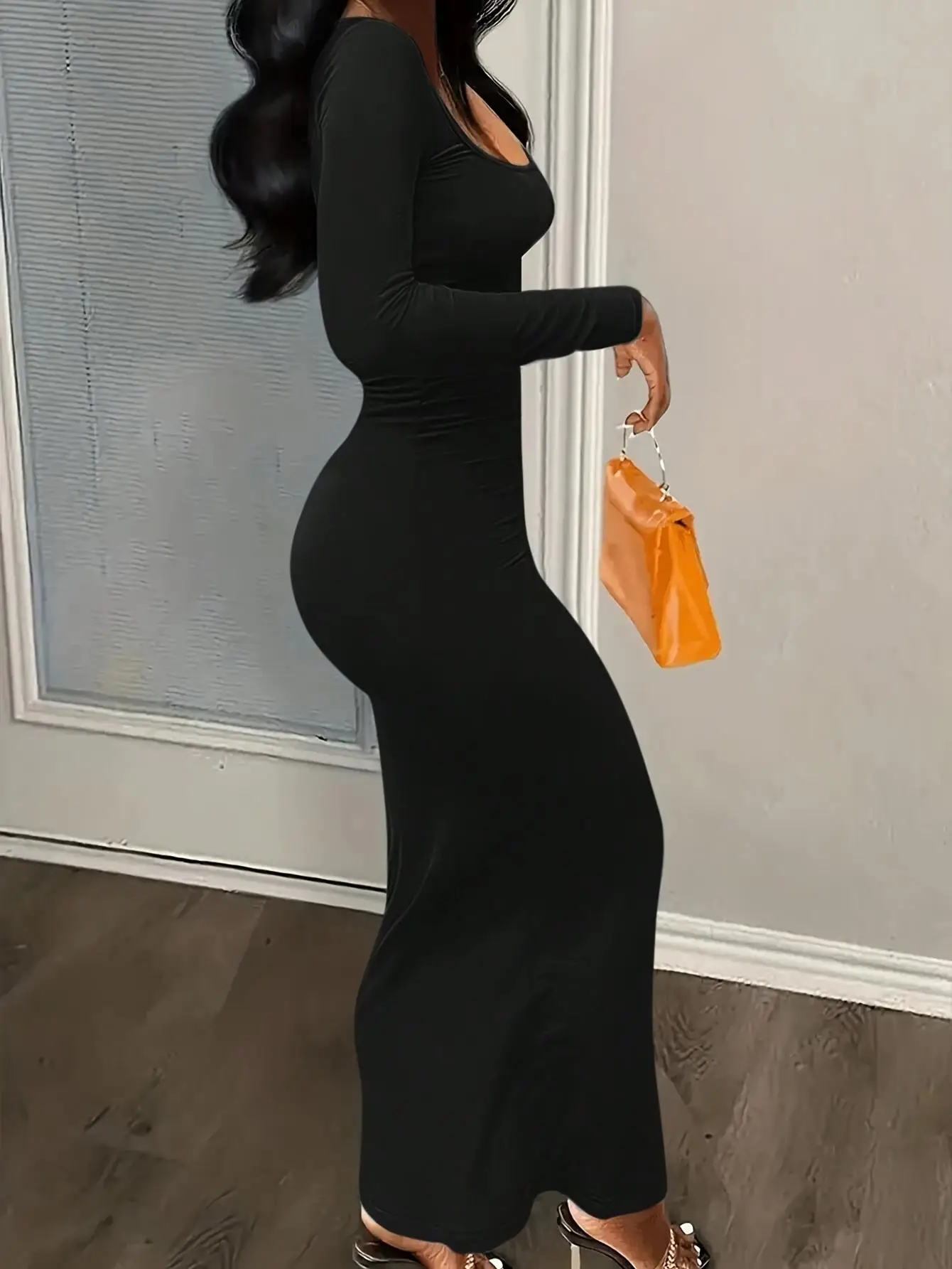 Women’s Elegant Low-Cut Round Neck Long Dress